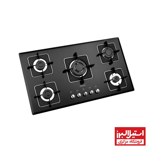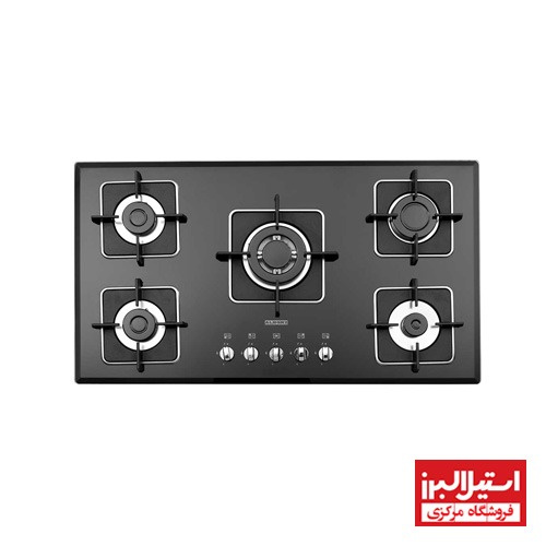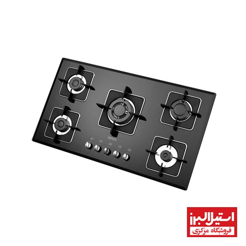 گاز رومیزی کد G5960 استیل البرز دارای 5 شعله که شامل 1 شعله کوچک, 1 شعله متوسط , 1 شعله بزرگ و 1 شعله پلوپز است.
